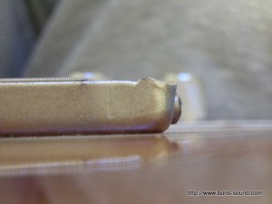ブリッジ付近でピッキングすると、結構、痛い。って事で、ハンドルーターで軽く削ってみました。